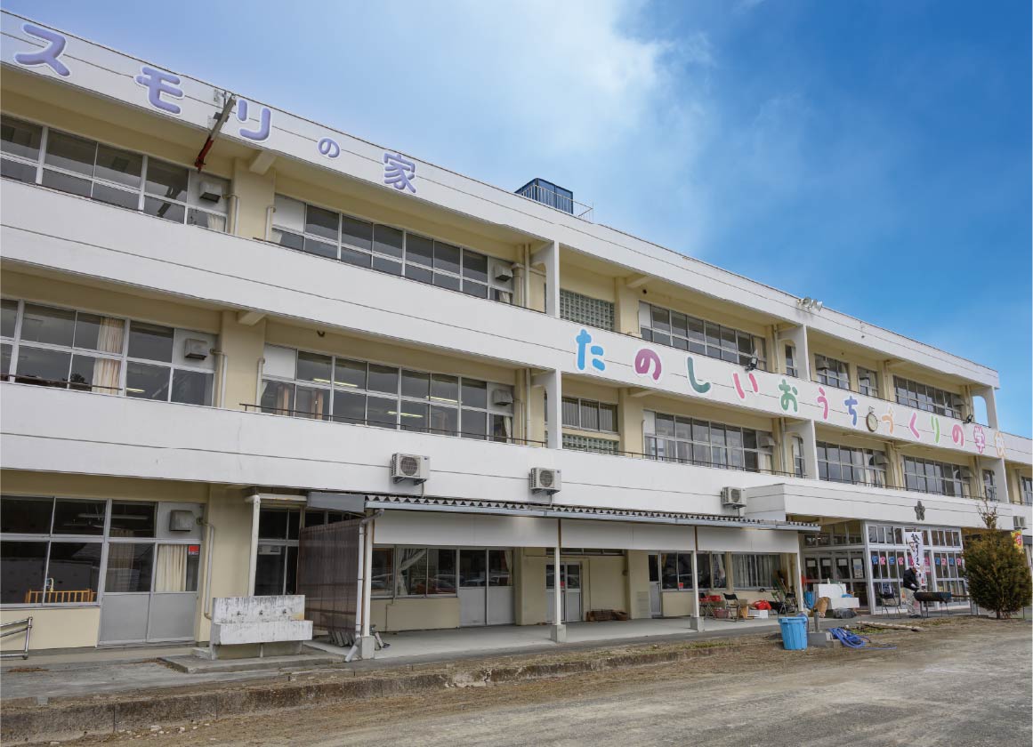 「こども工務店」の会場となるのは、宮城県大郷町にある、スモリの家の学校施設『たのしいおうちづくりの学校』です。その名前の通り、以前は小学校として使われていた建物を活用しています。