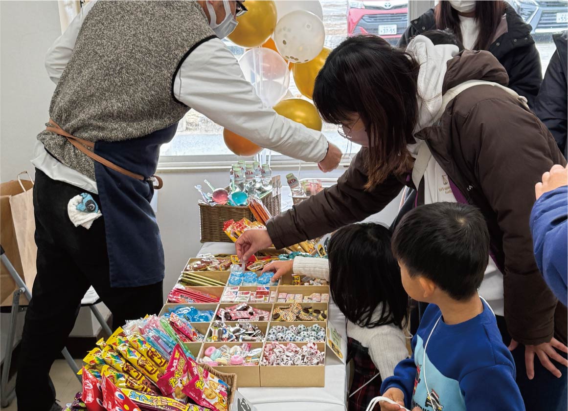 休憩コーナーの一角に設けられていたのは、何と駄菓子屋さん!ここで、職人さん体験でもらった「スモコイン」と駄菓子を交換できるんです。